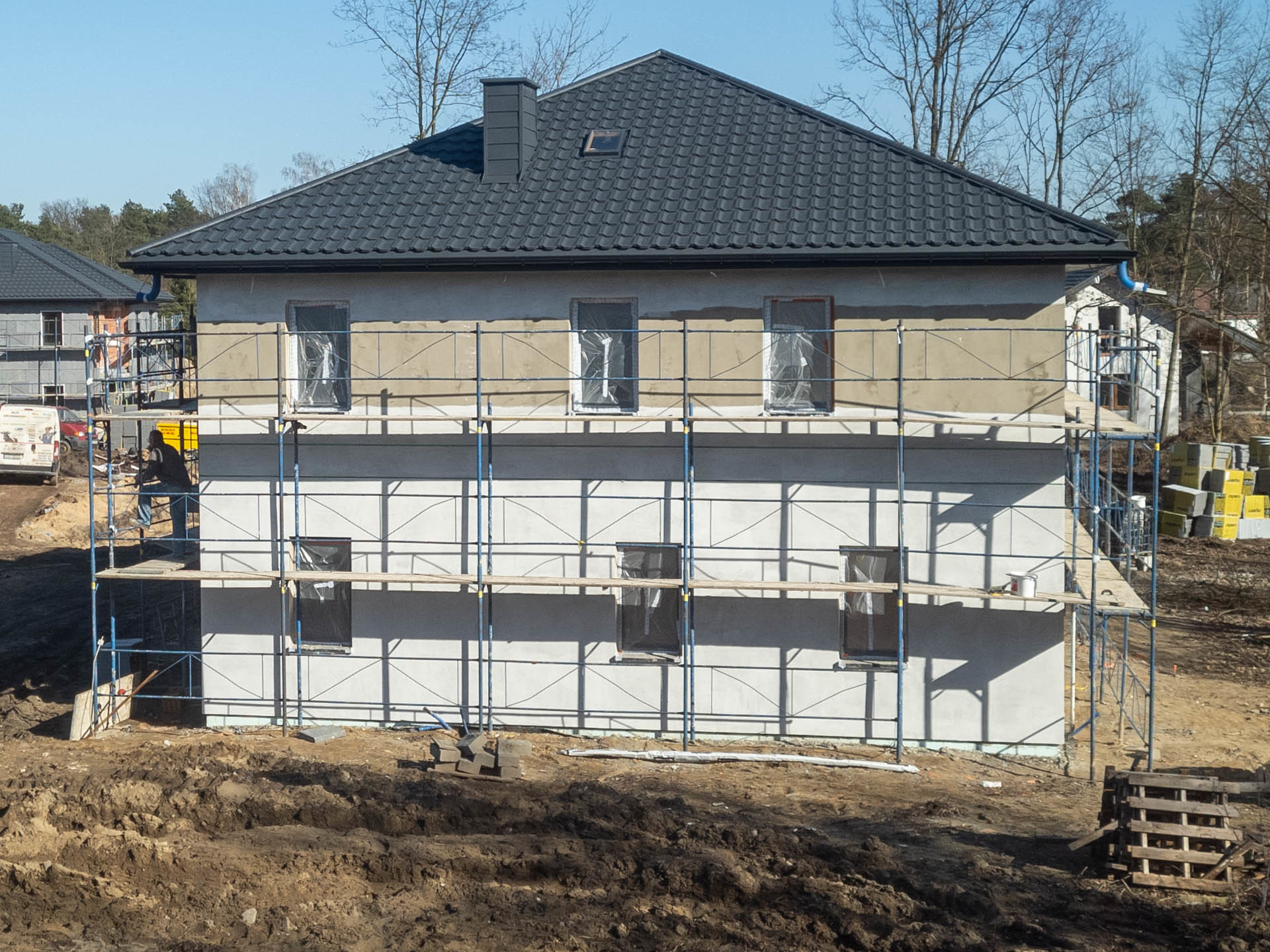 Na zdjęciach z ostatniej wizyty na budowie – wykonanych zarówno z ziemi, jak i z powietrza – widać wyraźnie jak z tygodnia na tydzień zmienia się teren inwestycji i jak szybko powstaje nowe osiedle domów jednorodzinnych.